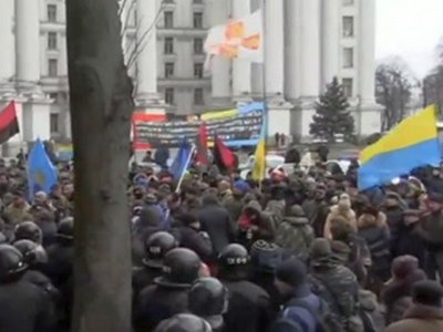 Активисты ОУН забросали брусчаткой офис Ахметова в Киеве
