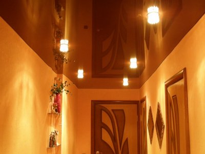 Для прихожей прекрасно подходит поливинилхлоридное полотно с глянцевой, матовой и сатиновой фактурой