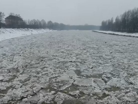 Завораживающее видео движения ледяных глыб на речке Уж запечатлели с высоты (видео)