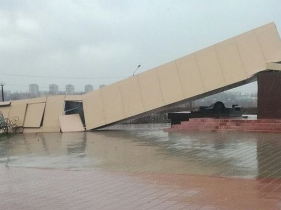Памятник строителям в Волгодонске снесло сильным ветром