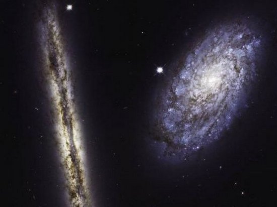 Обе галактики располагаются на расстоянии около 55 миллионов световых лет от Земли.