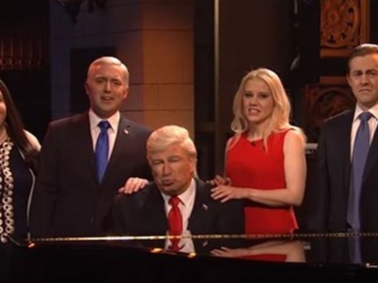 Болдуин исполнил песню "Аллилуйя" на фортепиано, к нему присоединились некоторые из "друзей" Трампа в политике.