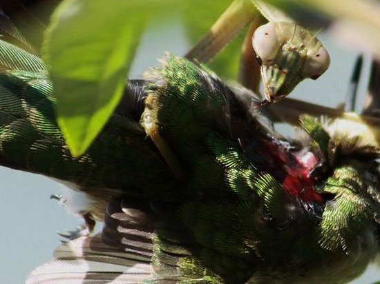 Международная группа ученых описала, как крупные насекомые из отряда богомоловых охотятся на взрослых колибри