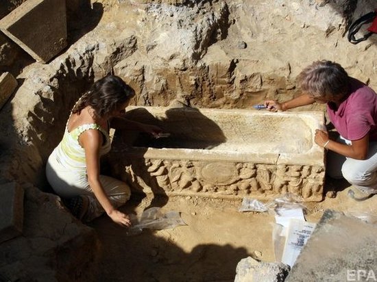 Мраморные саркофаги были найдены на глубине около 2,5 метров ниже уровня улицы