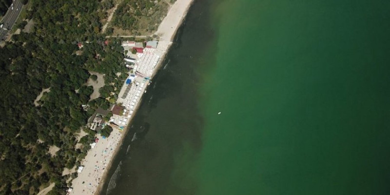 Несмотря на черный оттенок воды, отдыхающие продолжают купаться в море.