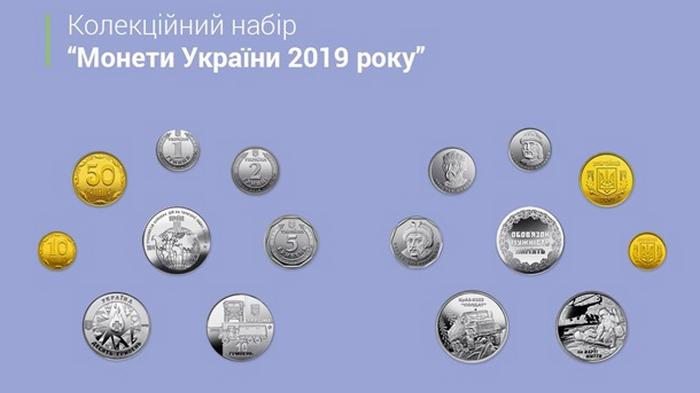 В набор входят разменные монеты Украины номиналом 10, 50 копеек, монеты номиналами 1, 2, 5 гривен и памятные монеты номиналами 10 гривен.