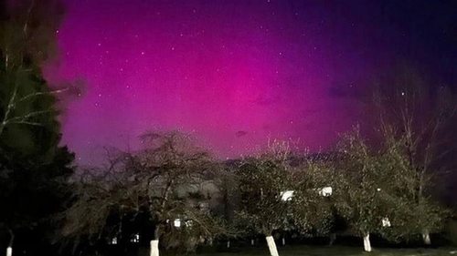 Отблески зеленого и розового сияния на фоне ночного неба видели жители северных областей.