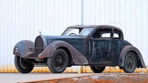 Bugatti Type 57 Ventoux покрыт ржавчиной, его окна выбиты, а двигатель и сиденья сняты, однако это ценная коллекционная модель