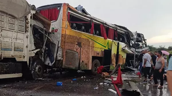 Пассажирский автобус, следовавший по маршруту Диярбакыр - Стамбул, столкнулся с двумя легковыми автомобилями и одним грузовиком.