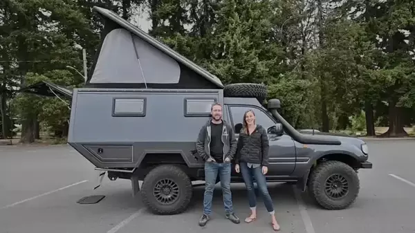Автодом Toyota Land Cruiser 80 оборудовали жилым отсеком с раскладным диваном, кухней и портативным душем.
