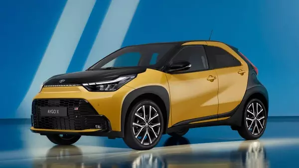 Модернизированный 3,7-метровый кроссовер Toyota Aygo X стал выразительнее на вид благодаря новым раскосым фарам и более агрессивному бамперу