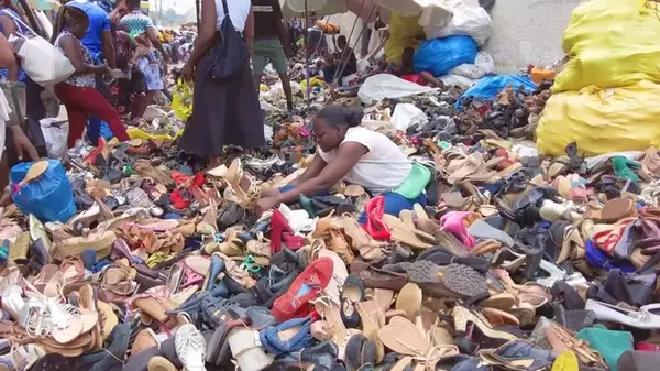 Выброшенная одежда известных брендов, таких как Next, H&M, Zara, Marks & Spencer и многих других, отправляется на рынок секонд-хэнда в Гану