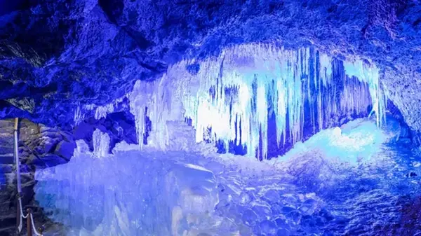 Ледяные столбы в ледяной пещере Нарусава могут достигать высоты до 3 метров