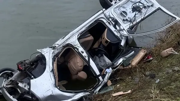 Полиция развернула на дороге препятствие с шипами, но автомобиль, пытаясь его объехать, перевернулся и скатился на берег озера