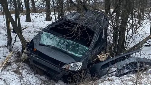 Водитель автомобиля Mitsubishi Lancer не справился с управлением, в результате чего транспортное средство съехало на обочину и перевернулось
