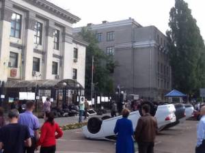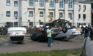 Активисты перевернули автомобили у посольства Росии в Киеве (фото) | |