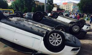 В столице продолжается акция протеста - в ход идут зеленка, яйца и перевернутые автомобили