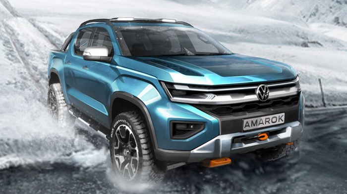 Опубликованы официальные рендеры Volkswagen Amarok второй генерации. Пикап презентуют в середине 2022 года и с осени он поступит в продажу. Об этом сообщает официальный сайт Volkswagen.Новый Volkswagen Amarok запустят в производство на заводах в Аргентине и ЮАР. Разрабатывали его совместно с Ford и он построен на рамной платформе пикапа Ford Ranger новейшего поколения. Volkswagen Amarok 2022 выглядит агрессивнее собрата. У него выраженные колесные арки, стреловидные светодиодные фары и широкая решетка радиатора. На рендерах показана экстремальная версия Wildtrack с внедорожной резиной и защитным пластиковым обвесом. Салон Volkswagen Amarok практически полностью повторяет интерьер Ford Ranger 2022. У него позаимствовали и рычаг КПП, и цифровую панель приборов, и большой тачскрин портретного формата. А вот руль знаком по Volkswagen Touareg. Ожидается, что пикап Volkswagen Amarok сохранит турбодизели объемом 2,0 и 3,0 л. Позже линейку возможно расширят гибридная модификация и мощный заряженный Amarok R. На выбор предложат 6-ступенчатую механическую КПП и новый 10-ступенчатый автомат. Новый Volkswagen Amarok 2022 будет доступен с задним, подключаемым полным или постоянным полным приводом. ![]()