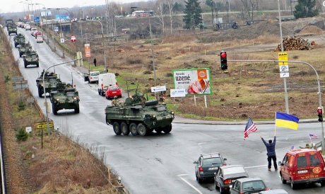 Американский военный конвой, прибывший в Чехию, местные жители встретили украинским флагом.