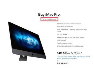 ![]() Фото: Apple На сайте Apple указано, что моноблоки iMac Pro "пока есть в наличии".