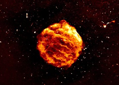 Этому объекту, по оценкам, более 1 млн лет, он находится на расстоянии 10 000 – 15 000 световых лет от нас. Это остаток мощного взрыва умирающей звезды. Изображение G261.9+5.5 после обработки Setonix: Выброшенный взрывом материал несется в окружающую межзвездную среду, вытесняя газ, пыль и любой другой материал на своем пути: эта материя "уплотняется" и нагревается, что и видят затем в различных волновых диапазонах астрономы. Ударная волна также влияет на межзвездные магнитные поля, "сжимая" их. Выбросы на изображении G261.9+5.5 исходят от высокоэнергетических электронов, захваченных этими полями. | |