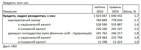 Кредитный портфель банков для населения вырос на 1,8% до 246 млрд гривен, для предприятий - на 1,7% до 778 млрд гривен.