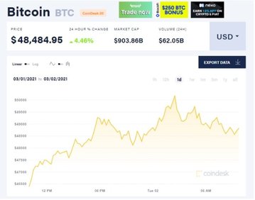 Стоимость самой популярной в мире криптовалюты Bitcoin за последние сутки выросла на более чем $2100. Ее стоимость ночью достигала $50 177. Об этом свидетельствуют данные криптовалютной биржи Coindesk.По состоянию на 10:00 по Киеву криптовалюта торговалась по $48 484. Рост криптовалюты наблюдается после падения до уровней $43 522 28 февраля. До этого биткоин достиг максимальной цены 21 февраля – $58 012. По данным Вloomberg, цена биткойна подскочила, поскольку инвесторы Citi, Goldman Sachs проявляют к ней большой интерес. В отчете Citigroup Global Perspectives & Solutions стратеги изложили аргументы в пользу того, что биткойн скоро будет играть более важную роль в мировой финансовой системе и может стать "валютой выбора для международной торговли" в предстоящие годы. 16 февраля Bitcoin впервые пробил отметку в $50 000. Криптовалюта начала дорожать после того, как Tesla объявила о покупке биткоинов. Подогрели интерес инвесторов также Visa, которая анонсировала выпуск собственной системы для покупки криптовалюта и Mastercard, которая планирует начать работать с несколькими криптовалютами уже в этом году. | |