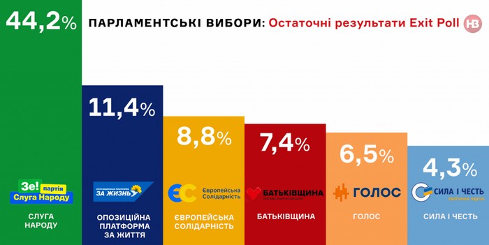 Во внеочередных выборах в Верховную Раду не приняли участия более 14,7 млн украинцев. Об этом свидетельствуют данные, обнародованные на сайте Центральной избирательной комиссии.Центризбирком сообщает, что общее количество избирателей, внесенных в список, составило 29 млн 527 тысяч 744 человека. При этом количество избирателей, получивших избирательные бюллетени на парламентских выборах, составляет 14 млн 718 тысяч 556. Следовательно, не пришли проголосовать на парламентских выборах 14 млн 770 тысяч 894 избирателя. Напомним, что официальная явка избирателей на внеочередных выборах в Верховную Раду, состоявшихся 21 июля 2019 года, составила 49,84%. Согласно окончательным данным Национального экзитпола, партия Слуга народа набирает 44,2% голосов, Оппозиционная платформа — За життя — 11,4%, Европейская солидарность — 8,8%, Батькивщина — 7,4%, Голос — 6,5%. ![]() | |