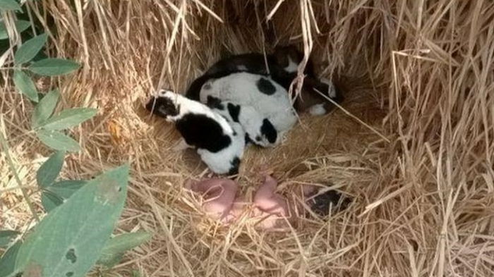 Бродячая собака с щенками спасла своим теплом брошенного младенца | |