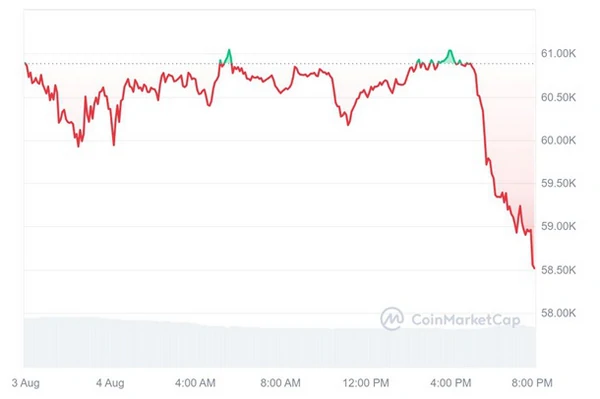 Цена биткоина упала ниже психологического уровня в $60 тысяч | |