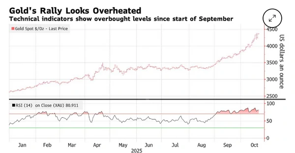 Стоимость золота упала на фоне уменьшения спроса на "безопасные" активы. Инвесторы оптимистично отреагировали на сигналы о возможном ослаблении торговой напряженности между США и Китаем. Об этом сообщает Bloomberg. Во вторник цена золота снизилась на 0,8% - до 4322,93 доллара за унцию, после того как накануне достигла рекордного уровня 4381,52 доллара. Аналитики считают, что недавний рост мог быть слишком резким, а укрепление доллара сделало драгоценные металлы менее доступными для покупателей.