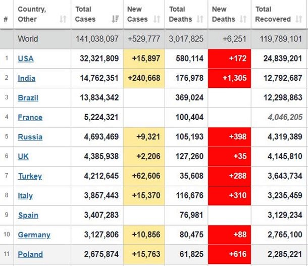 Число COVID случаев в мире превысило 141 млн | |