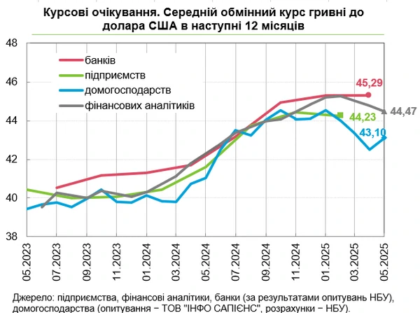 Прогнозы курсаВ госбюджет на 2025 год заложен средний курс на уровне 45 грн/доллар и 45,6 на декабрь. В то же время в апреле Минэкономики значительно улучшило прогноз по курсу доллара. В проекте бюджетной декларации на 2026-2028 годы говорится, что среднегодовой курс в 2025 году будет на уровне 43,3 грн/доллар. Однако этот показатель не является ни ориентиром, ни прогнозом для НБУ, который в Украине отвечает за валютно-курсовую политику. Как заявил заместитель главы НБУ Сергей Николайчук, валютно-курсовая политика НБУ прежде всего нацелена на обеспечение монетарных целей. По его словам, о бюджетный показатель курса гривны к доллару "не является каким-то указателем для Национального банка". НБУ держит курс около 41,50 грн/доллар с начала мая. Фактически курс не менялся с начала февраля. | |
