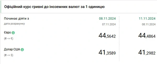 Национальный банк Украины (НБУ) снизил курс доллара к гривне. Доллар дешевеет. Об этом сообщает РБК-Украина со ссылкой на данные на сайте регулятора. Официальный курс на 11 ноября 2024 года установлен на таком уровне: 41,2982 гривен за 1 доллар (-0,0607 грн). Официальный курс евро составит 44,4864 гривен за 1 евро (-0,0778 грн).