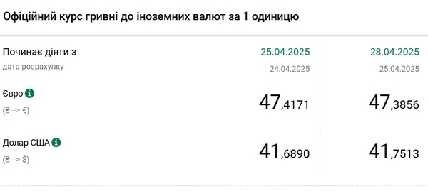 Национальный банк Украины (НБУ) повысил курс доллара к гривне. Американская валюта дорожает четвертый день подряд. Об этом сообщает РБК-Украина со ссылкой на данные на сайте регулятора. Официальный курс на 28 апреля 2025 года установлен на таком уровне: 41,7513 гривен за 1 доллар (+0,0623 грн). Официальный курс евро составит 47,3856 гривен за 1 евро (-0,0315 грн).