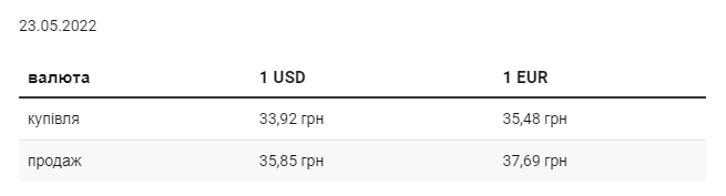 В понедельник, 23 мая, средний курс покупки наличного доллара в украинских банках, по сравнению с пятницей, вырос на 2,26 грн и составляет 33,92 грн. Курс продажи вырос на 3,67 грн до 35,85 грн. Минимальный курс покупки доллара в банках составляет – 31,5 грн, максимальный – 37 грн. Для продажи минимальный курс – 32,17 грн, максимальный – 39 грн. Средний курс покупки евро вырос на 2,42 грн и составляет 35,48 грн. Средний курс продаж вырос на 3,89 грн и составил 37,69 грн. Минимальный курс покупки для евро составляет – 32,1 грн, максимальный – 39 грн. Для продажи минимальный курс – 33,4 грн, максимальный – 41,5 грн. | |