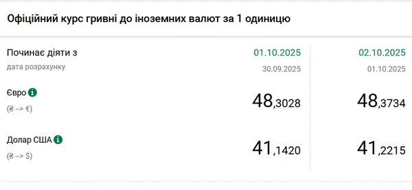 Национальный банк Украины (НБУ) повысил курс доллара к гривне. Доллар подрожал после падения до минимума с начала сентября. Об этом сообщает РБК-Украина со ссылкой на данные на сайте регулятора. Официальный курс на 2 октября 2025 года установлен на таком уровне: 41,2215 гривен за 1 доллар (+0,0795 грн). Официальный курс евро составит 48,3734 гривен за 1 евро (+0,0706 грн).