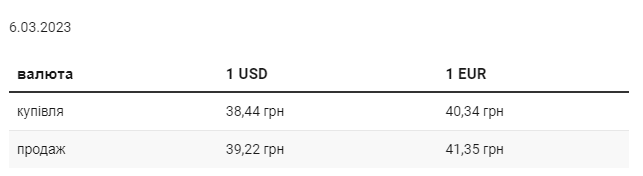 В понедельник, 6 марта, средний курс покупки наличного доллара в украинских банках, по сравнению с пятницей, не изменился и составляет 38,44 грн. Курс продажи упал на 3 коп. – до 39,22 грн. Минимальный курс покупки доллара в банках составляет 37,8 грн, максимальный – 38,8 грн. Для продажи минимальный курс также 38,8 грн, максимальный – 39,7 грн. Средний курс покупки евро вырос на 7 коп. и составил 40,34 грн. Средний курс продаж увеличился на 2 коп. – до 41,35 грн. Минимальный курс покупки для евро составляет 38,8 грн, максимальный – 41,06 грн. Для продажи минимальный курс – 40,8 грн, максимальный – 41,8 грн. | |