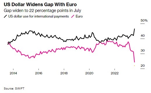 Доллар установил новый рекорд в международных расчетах — Bloomberg | |