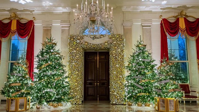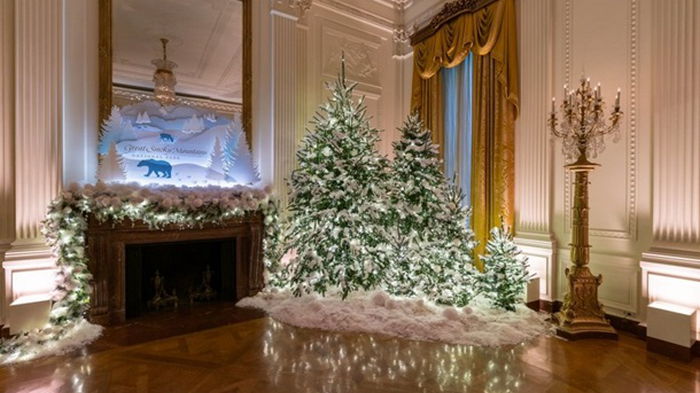 ![]() Фото: twitter.com/FLOTUS В резиденции установили сразу 77 елок и 25 венков, все праздничные декорации украшают 83 615 праздничных огней