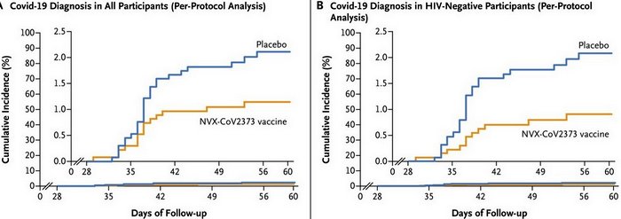 Эффективность вакцины американской компании Novavax против вызванной "южноафриканским" штаммом коронавируса (B.1.351) инфекции – 51% среди ВИЧ-отрицательных людей. Результаты фазы IIa/b клинических исследований в ЮАР опубликованы вчера в журнале NEJM.