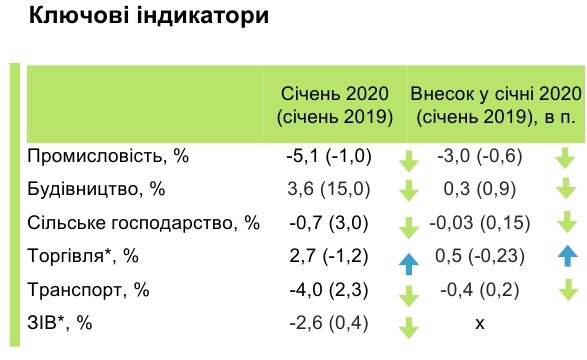 В первый месяц 2020 года экономика Украины сократился на 0,5%. Об этом говорится в обзоре Минэкономики со ссылкой на данные Госстата.