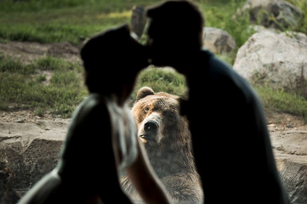 Медведь на свадебных фотографиях американской пары собрали тысячи комментариев и репостов в соцсети Reddit. Эллисон и Тейбор решили устроить фотосессию в зоопарке штата Миннесота. На одном из снимков влюбленные держатся за руки перед вольером, где находится хищник.На каждом из снимков у животного меняется выражение морды. Большинству пользователей показалось, что медведь похож на отвергнутого влюбленного. "Он выглядит как тот самый парень, который тайно влюблен в невесту и теперь окончательно потерял надежду". "Показалось, будто он ждал момента, когда зададут вопрос, есть ли препятствия для союза, но затем понял, что в наши дни о таком уже не спрашивают". "Говорите сейчас или храните тайну навеки. Медведь: "Неееееееееет". ![]() ![]()