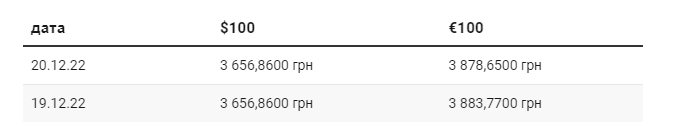 Согласно официальному курсу Национального банка Украины, 20 декабря курс гривны по отношению к евро вырос на 5 копеек. По отношению к доллару национальная валюта остается без изменений. | |