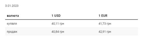 Во вторник, 3 января, средний курс покупки наличного доллара в украинских банках, по сравнению с понедельником, вырос на 2 коп. и составляет 40,11 грн. Курс продаж упал на 4 коп. до 40,84 грн. Минимальный курс покупки доллара в банках составляет – 39,4 грн, максимальный – 40,4 грн. Для продажи минимальный курс – 40,45 грн, максимальный – 41,4 грн. Средний курс покупки евро снизился на 4 коп. и составил 41,73 грн. Средний курс продаж опустился на 7 коп. до 42,91 грн. Минимальный курс покупки для евро составляет – 40,3 грн, максимальный – 42,4 грн. Для продажи минимальный курс – 42,3 грн, максимальный – 43,4 грн. | |
