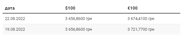 Согласно официальному курсу Национального банка Украины, 22 августа курс гривны по отношению к евро вырос на 47 копеек. По отношению к доллару национальная валюта остается на том же уровне. | |