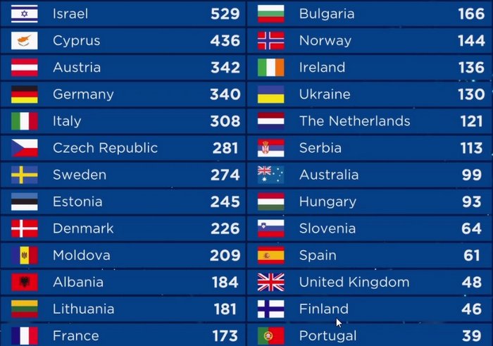 ![]() Фото: EPA/UPG Первая тройка победителей Евровидения 2018 выглядит так: Израиль (529 баллов), Кипр (436 баллов) и Австрия (342 балла)