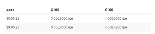 Согласно официальному курсу Национального банка Украины, 30 июня курс гривны по отношению к евро практически не изменился. По отношению к доллару национальная валюта также остается без изменений. | |