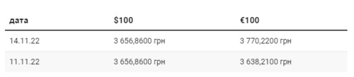 Согласно официальному курсу Национального банка Украины, 14 ноября курс национальной валюты по отношению к евро упал сразу на гривну и 32 копейки. По отношению к доллару гривна остается без изменений. | |