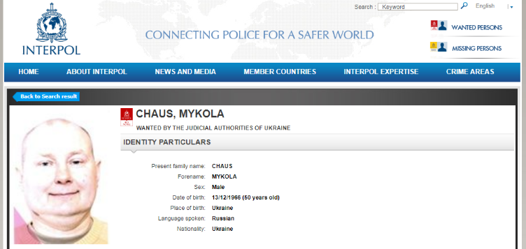 Интерпол объявил в розыск беглого украинского судью Чауса | |